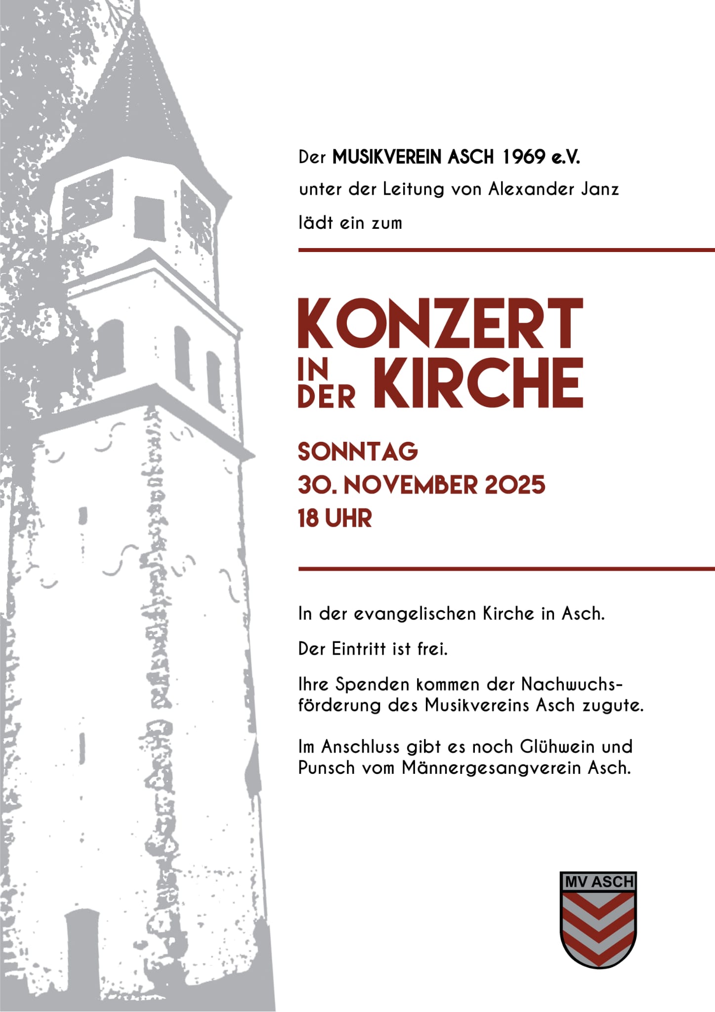 Konzert in der Kirche Die Anmeldungen sind geschlossen. Konzert in der Kirche 8 8 people viewed this event. Datum und Uhrzeit 30.11.2025 bis 30.11.2025 Standort Asch Veranstaltungsarten Auftritt Veranstaltungskategorie Verein